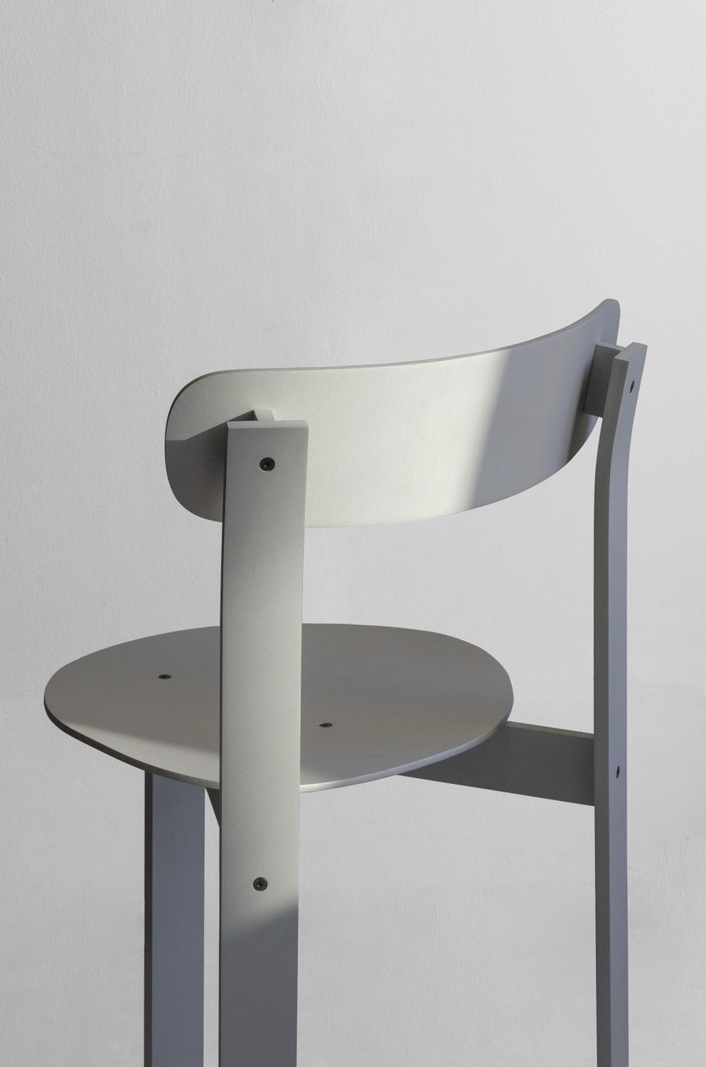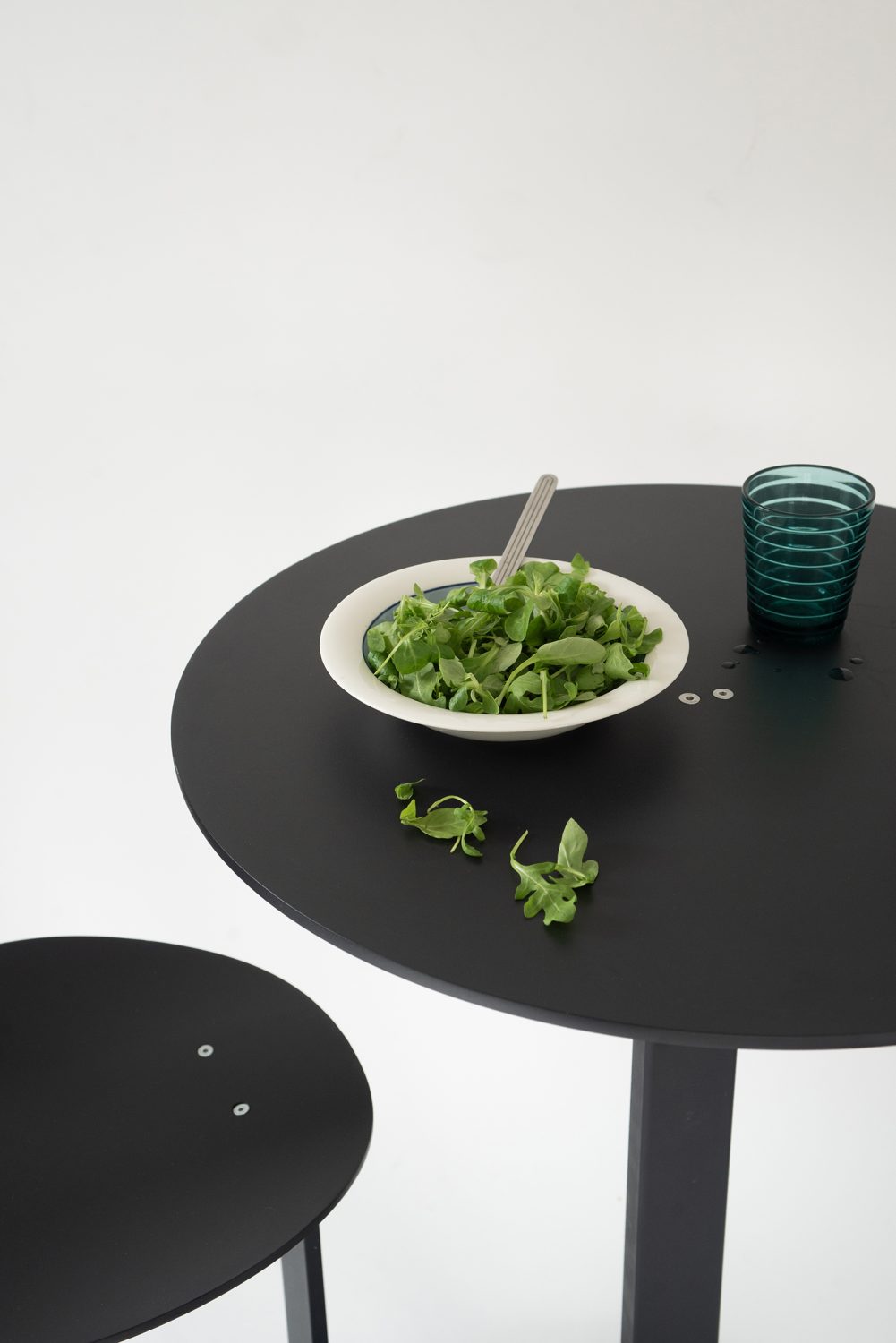 Nous avons voulu évoquer le mouvement du temps par la forme. Sans chiffres, ni signes ajoutés, c’est la déformation même de la matière qui dessine les heures et suggère une rotation suspendue. Avec son cadran en fonte d’aluminium, l’horloge s’approche de la première mesure du temps, soit le déplacement de l’ombre et de la lumière au fil de la journée. La surface contrastée de l’horloge réfléchit les variations du jour et se transforme en fonction de la lumière.